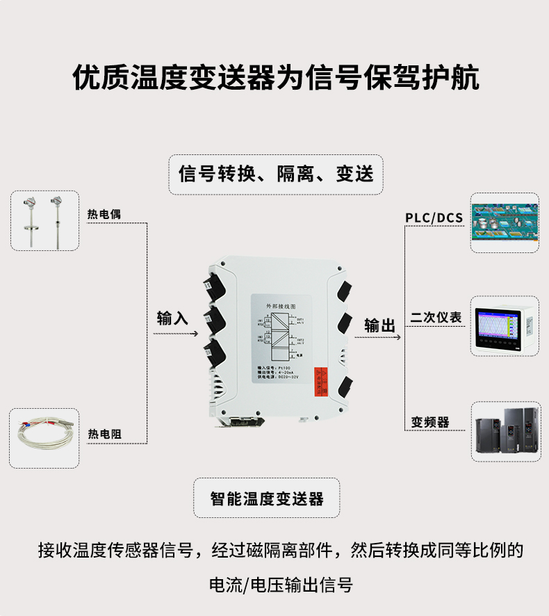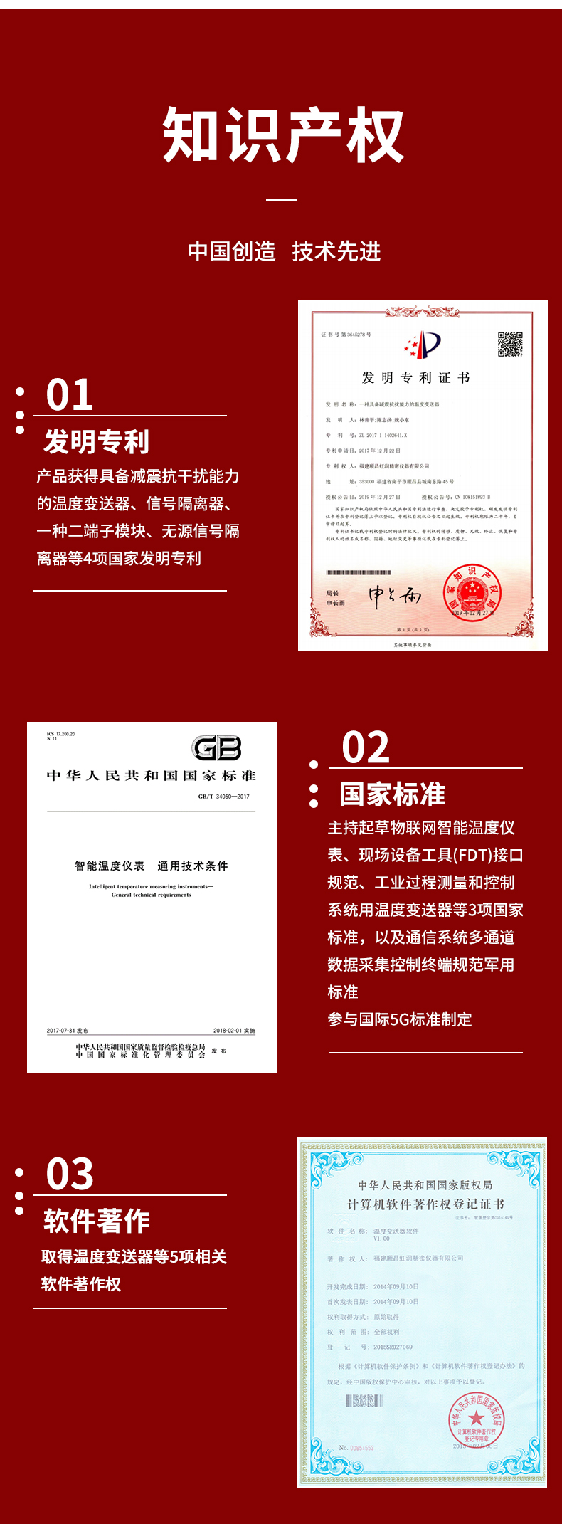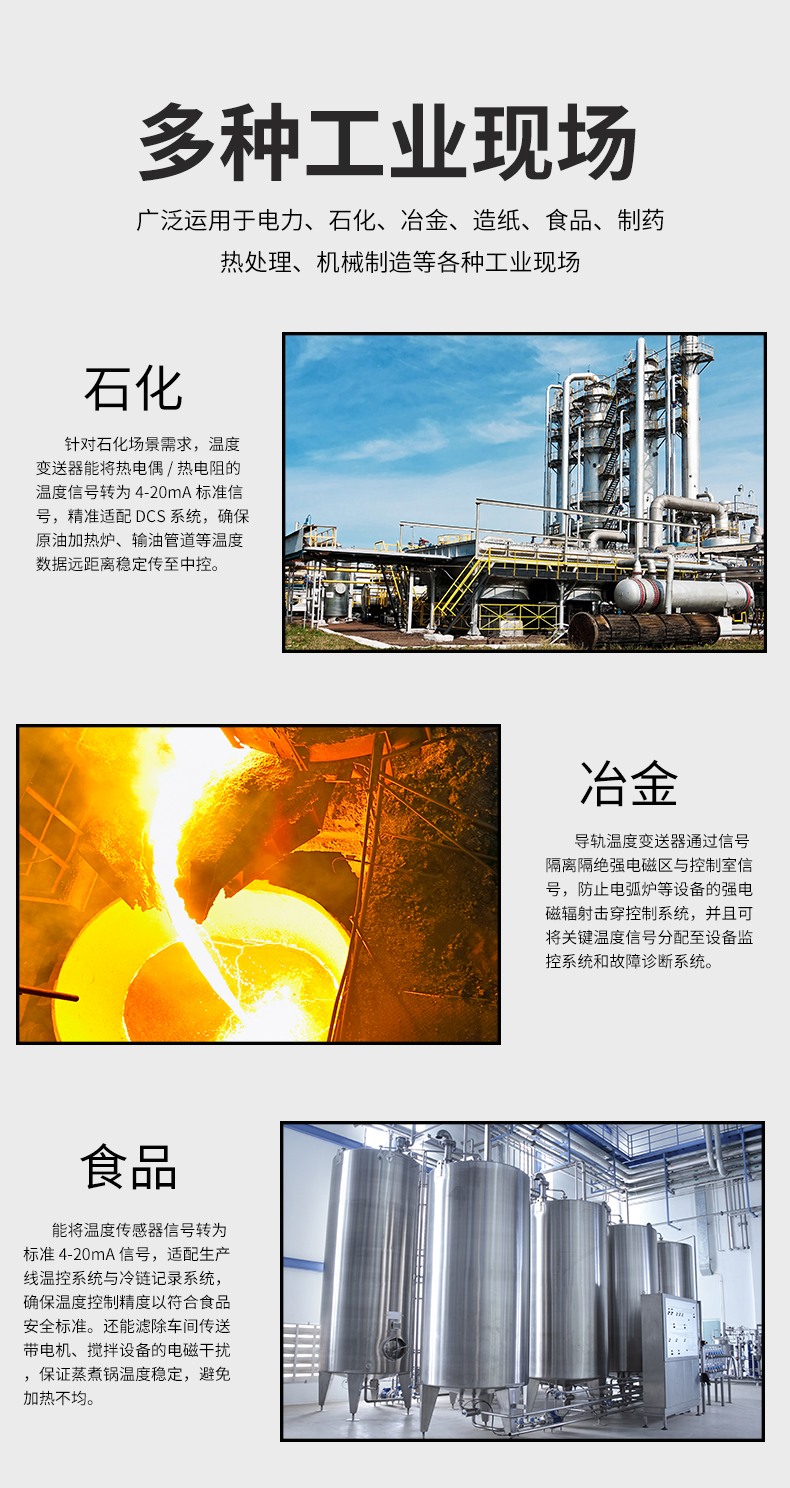 虹潤公司是專業(yè)生產(chǎn)溫度變送器的國家專精特新“小巨人”企業(yè)。生產(chǎn)的溫度變送器,具有采用磁隔離技術(shù),配套編程器可修改參數(shù),抗干擾能力強,穩(wěn)定性好,帶RS485或HART通訊等特點。該產(chǎn)品不僅通過HART基金會認證、德國萊茵 CE 認證與 SIL 功能安全認證,還獲得具備減震抗干擾能力的溫度變送器、信號隔離器、一種二端子模塊、無源信號隔離器等4項國家發(fā)明專利,主持起草物聯(lián)網(wǎng)智能溫度儀表、現(xiàn)場設(shè)備工具(FDT)接口規(guī)范、工業(yè)過程測量和控制系統(tǒng)用溫度變送器等3項國家標(biāo)準,以及通信系統(tǒng)多通道數(shù)據(jù)采集控制終端規(guī)范軍用標(biāo)準,參與國際5G標(biāo)準制定,取得溫度變送器等5項相關(guān)軟件著作權(quán)。產(chǎn)品廣泛應(yīng)用于石油、電力、化工,冶金、制藥、紡織、橡膠制造等工業(yè)領(lǐng)域現(xiàn)場自動化測溫過程。