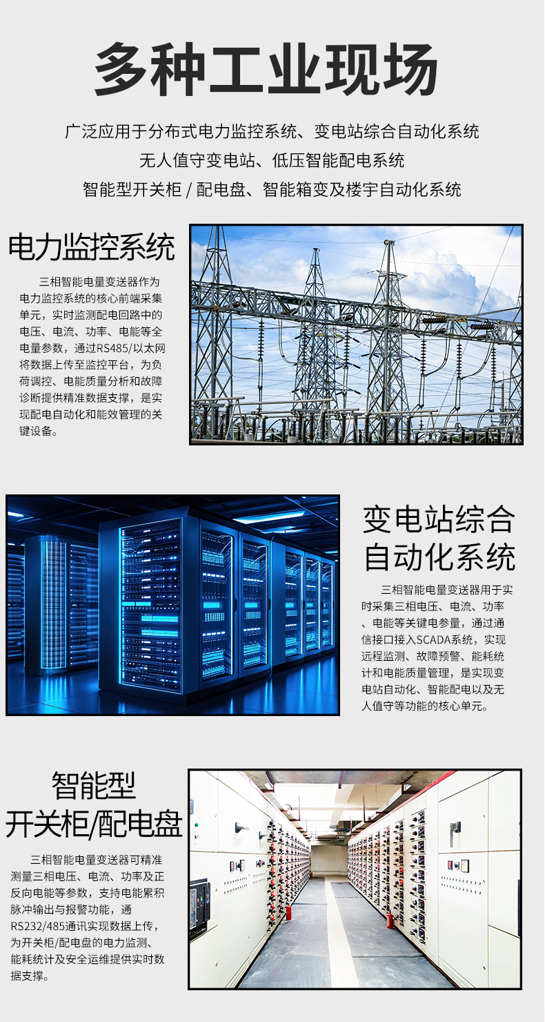 虹潤(rùn)公司是專業(yè)生產(chǎn)電流傳感器的國(guó)家專精特新“小巨人”企業(yè)。生產(chǎn)的三相智能電量變送器,具有多種電參數(shù)測(cè)量,正反向電能累積,多種輸出信號(hào),導(dǎo)軌壁掛共用, RS485/RS232通訊等特點(diǎn)。產(chǎn)品獲得基于一種交流信號(hào)變送器、交直流信號(hào)轉(zhuǎn)換電路、基于DCS技術(shù)的盤裝式三相電量表等3項(xiàng)國(guó)家發(fā)明專利,主持起草工業(yè)過程控制系統(tǒng)用模擬輸入兩位或多位輸出儀表國(guó)家標(biāo)準(zhǔn),直流漏電流傳感器規(guī)范、通信系統(tǒng)多通道數(shù)據(jù)采集控制終端規(guī)范等2項(xiàng)軍用標(biāo)準(zhǔn),以及現(xiàn)場(chǎng)設(shè)備集成等5項(xiàng)智能制造國(guó)家標(biāo)準(zhǔn),參與國(guó)際5G標(biāo)準(zhǔn)制定,取得液晶綜合電量集中顯示儀等2項(xiàng)相關(guān)軟件著作權(quán)。產(chǎn)品廣泛應(yīng)用于電力、冶金、化工、水泥、造紙、新能源、基礎(chǔ)設(shè)施等用電密集行業(yè)。