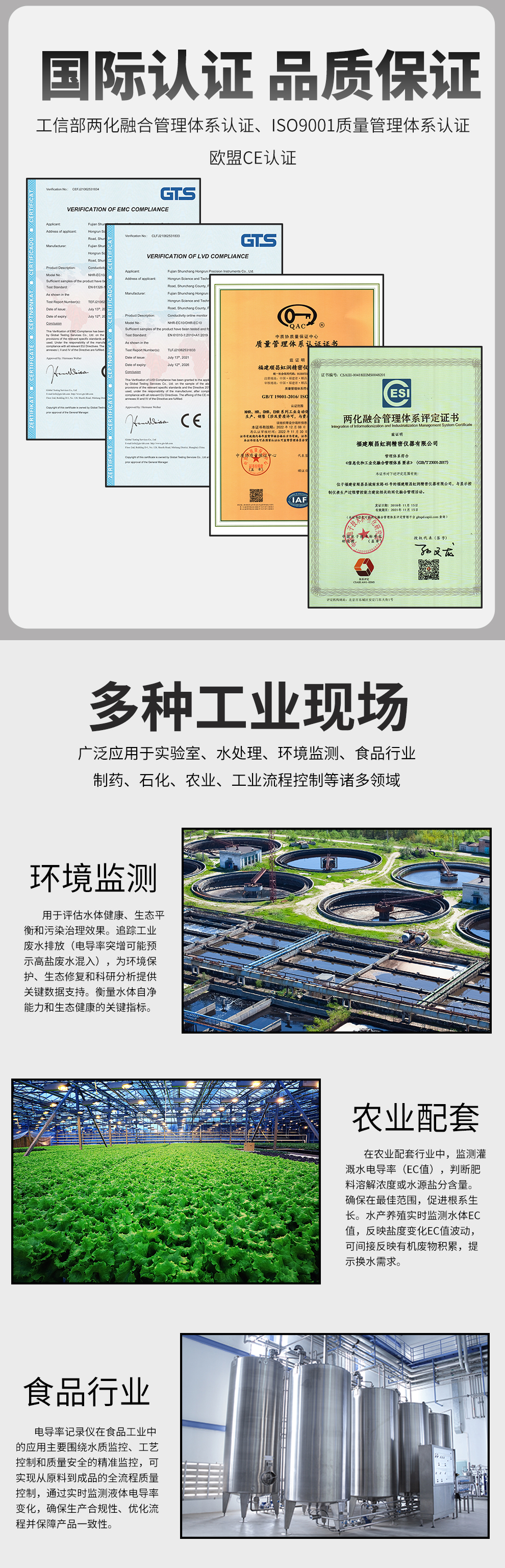 虹潤公司是專業(yè)生產(chǎn)水質(zhì)分析儀的國家專精特新“小巨人”企業(yè)。生產(chǎn)的電導(dǎo)率記錄儀,具有模擬電極與數(shù)字電極切換輸入、測量精準(zhǔn)穩(wěn)定不跳字,數(shù)據(jù)記錄與轉(zhuǎn)存、RS485/以太網(wǎng)通訊,配套上位機(jī)管理軟件等特點(diǎn)。產(chǎn)品獲得一種平板無紙記錄儀、智能化控制器等2項(xiàng)國家發(fā)明專利;主持起草物聯(lián)網(wǎng)智能記錄儀表通用技術(shù)條件、現(xiàn)場設(shè)備工具(FDT)接口規(guī)范.、過程分析技術(shù)系統(tǒng)等3項(xiàng)國家標(biāo)準(zhǔn),以及通信系統(tǒng)多通道數(shù)據(jù)采集控制終端規(guī)范軍用標(biāo)準(zhǔn),參與國際5G標(biāo)準(zhǔn)制定,取得電導(dǎo)率無紙記錄儀表等4項(xiàng)相關(guān)軟件著作權(quán)。產(chǎn)品廣泛應(yīng)用于環(huán)保水務(wù)、市政供水、水產(chǎn)養(yǎng)殖、農(nóng)業(yè)灌溉、科研實(shí)驗(yàn)等諸多領(lǐng)域。
