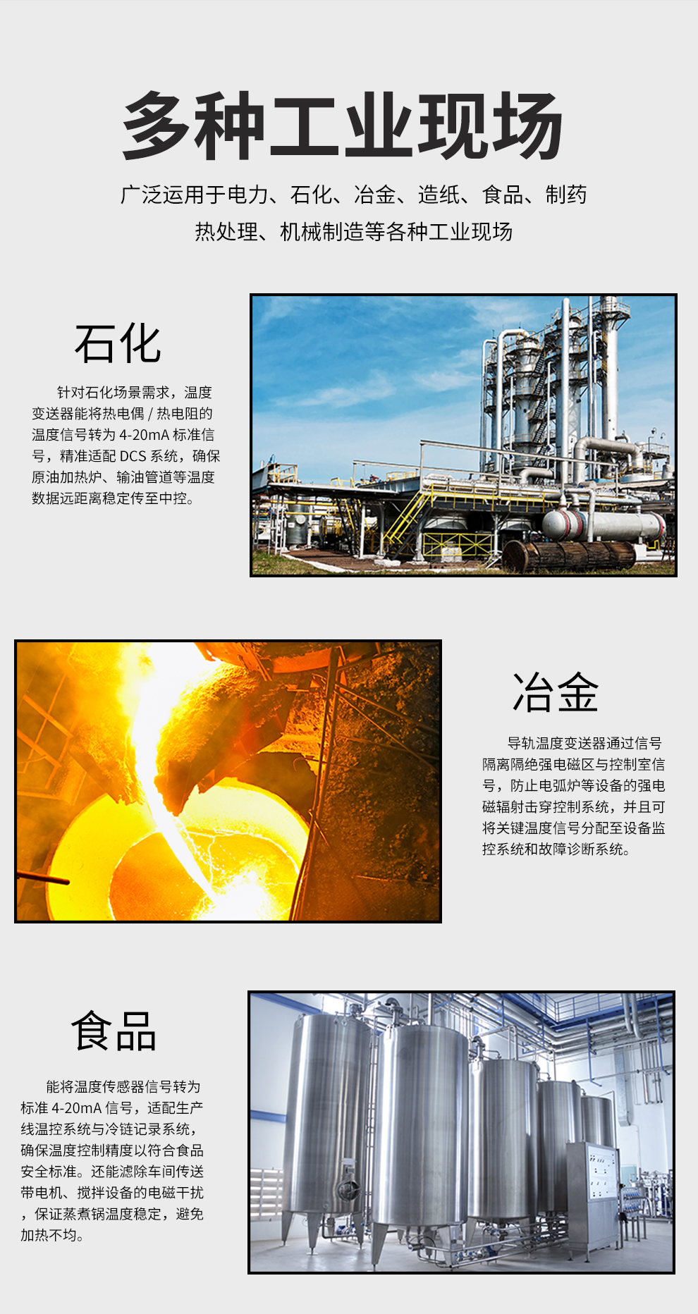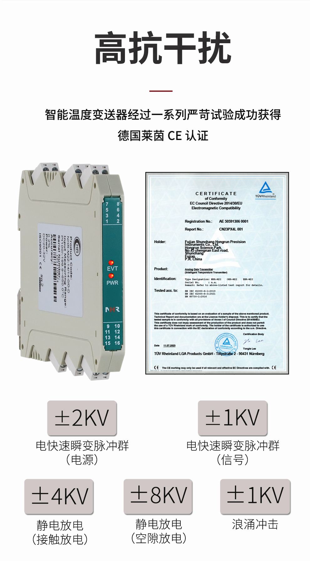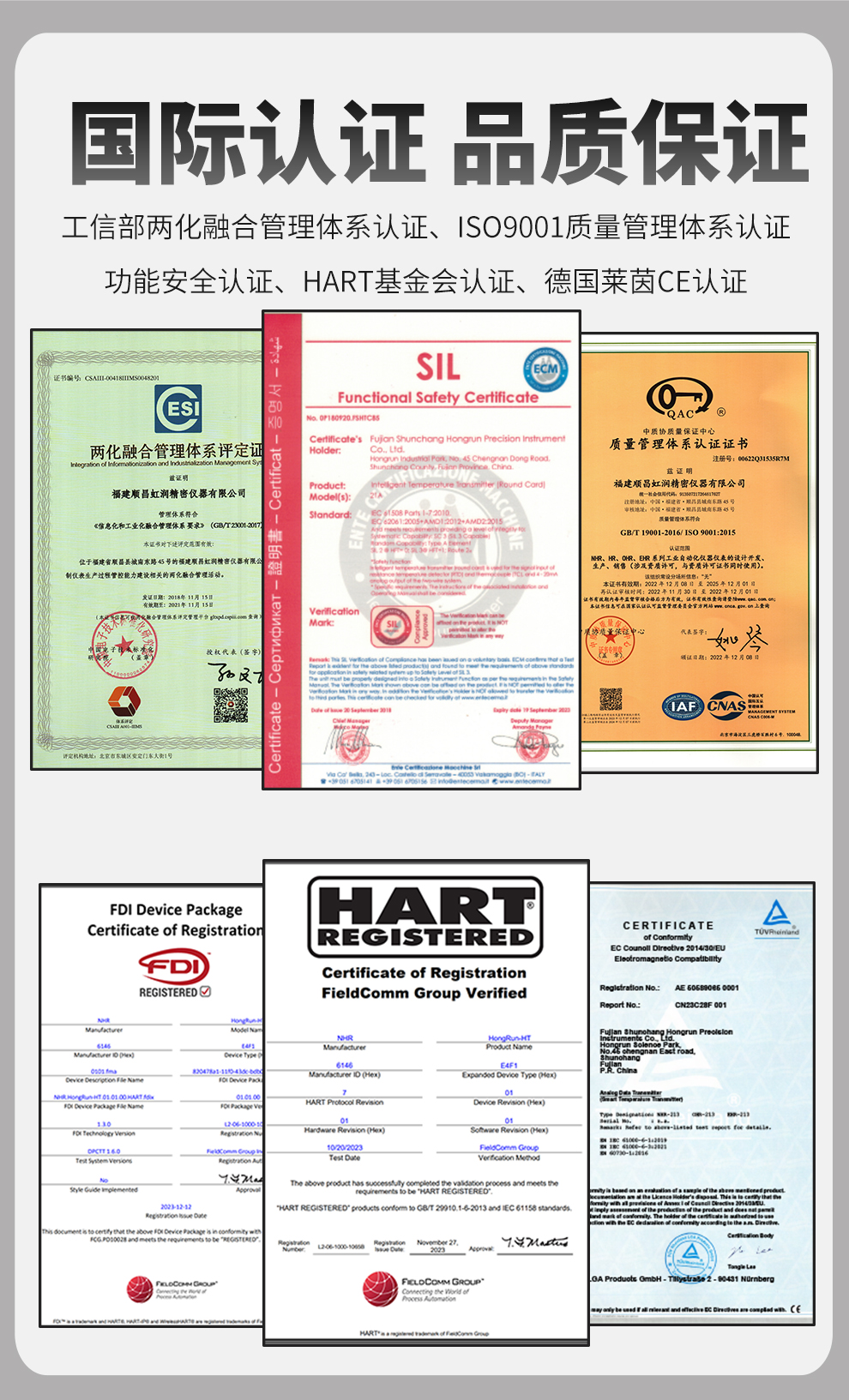 虹潤公司是專業(yè)生產(chǎn)溫度變送器的國家專精特新“小巨人”企業(yè)。生產(chǎn)的溫度變送器,具有采用磁隔離技術(shù),配套編程器可修改參數(shù),抗干擾能力強,穩(wěn)定性好,帶RS485或HART通訊等特點。該產(chǎn)品不僅通過HART基金會認證、德國萊茵 CE 認證與 SIL 功能安全認證,還獲得具備減震抗干擾能力的溫度變送器、信號隔離器、一種二端子模塊、無源信號隔離器等4項國家發(fā)明專利,主持起草物聯(lián)網(wǎng)智能溫度儀表、現(xiàn)場設(shè)備工具(FDT)接口規(guī)范、工業(yè)過程測量和控制系統(tǒng)用溫度變送器等3項國家標(biāo)準(zhǔn),以及通信系統(tǒng)多通道數(shù)據(jù)采集控制終端規(guī)范軍用標(biāo)準(zhǔn),參與國際5G標(biāo)準(zhǔn)制定,取得溫度變送器等5項相關(guān)軟件著作權(quán)。產(chǎn)品廣泛應(yīng)用于石油、電力、化工,冶金、制藥、紡織、橡膠制造等工業(yè)領(lǐng)域現(xiàn)場自動化測溫過程。