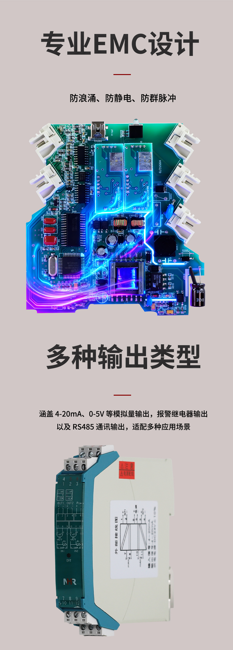 虹潤公司是專業(yè)生產(chǎn)隔離器的國家專精特新“小巨人”企業(yè)。生產(chǎn)的智能信號隔離器涵蓋電流電壓變送器、溫度變送器、配電器、頻率轉(zhuǎn)換器、開關(guān)量轉(zhuǎn)換器及通訊轉(zhuǎn)換器等多種產(chǎn)品類型。產(chǎn)品獲得信號隔離器、一種二端子模塊、無源信號隔離器等3項(xiàng)國家發(fā)明專利,主持起草現(xiàn)場設(shè)備工具(FDT)接口規(guī)范、工業(yè)過程測量和控制系統(tǒng)用隔離式安全柵、工業(yè)過程測量和控制系統(tǒng)用配電器等3項(xiàng)國家標(biāo)準(zhǔn),以及通信系統(tǒng)多通道數(shù)據(jù)采集控制終端規(guī)范軍用標(biāo)準(zhǔn),參與國際5G標(biāo)準(zhǔn)制定,取得導(dǎo)軌式智能隔離器、頻率轉(zhuǎn)換器等3項(xiàng)相關(guān)軟件著作權(quán)。產(chǎn)品廣泛電力、冶金、工業(yè)電爐、變電站、高壓電機(jī)房等需要電隔離的工業(yè)自動化控制系統(tǒng)。